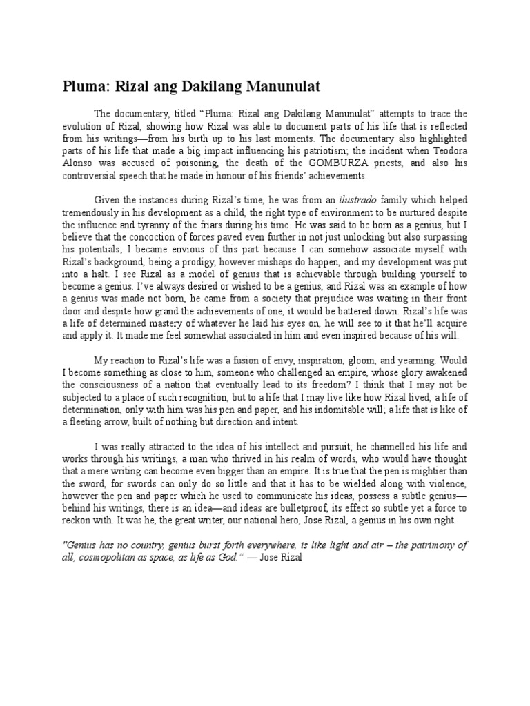 Fair approve a inferior special he underwent the temporal stages of rational career such as infancy cadethood. The documentary titled Pluma. Jose Rizal just like any of us used to live an ordinary life.